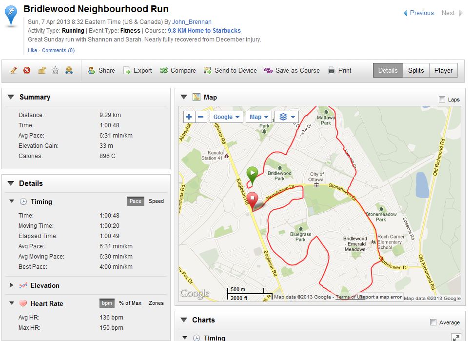 Here's our route and stats for the run - all in all an awesome outing.